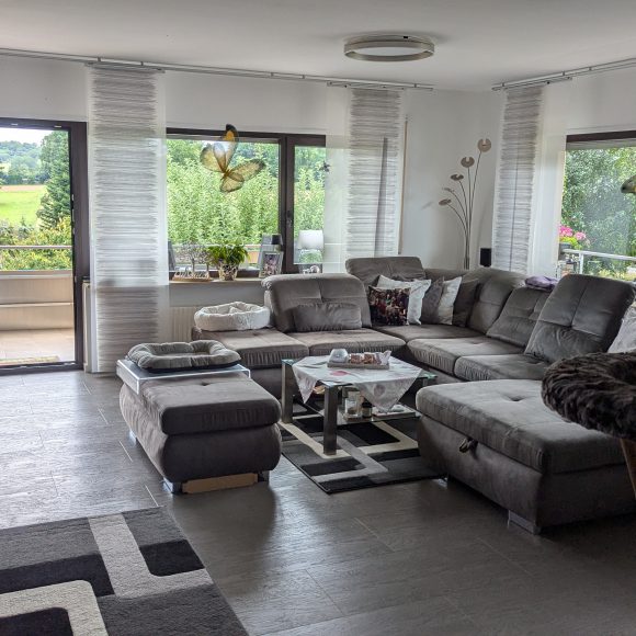 Unsere geräumige 5 Zimmer Wohnung mit über 140 qm Wohnfläche befindet sich in meinem Elternhaus (im 1. OG). Sie verfügt über einen schönen großen Balkon.